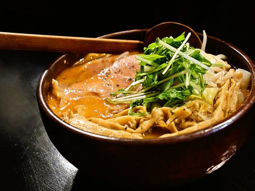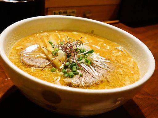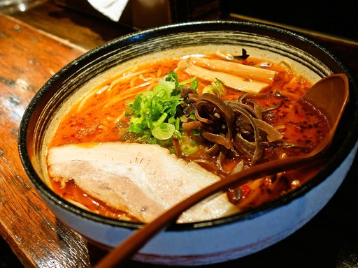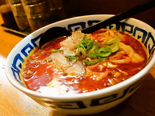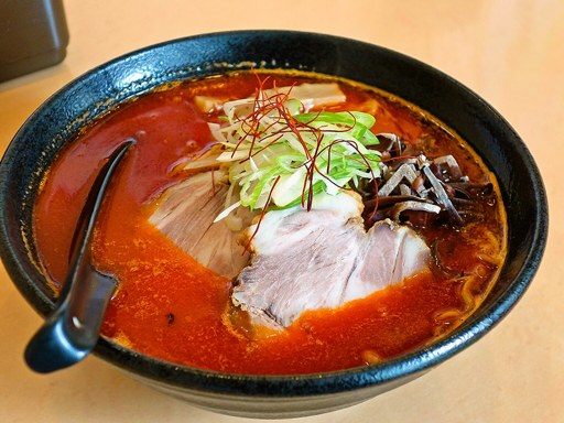 あえて匂い残した円やか豚骨に、ビシっとキマった味噌ダレと香辛料が交わる!辛さはそこそこ~。