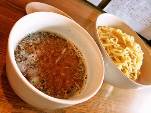 魚介豚骨のバランス良いサラサラつけダレに独特な平打ち麺!9/1~3&9/4昼は休業注意。