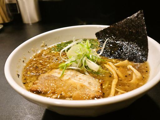 超ミルキーな牛骨の出汁感がぶわーっと来る一杯!極細麺とトッピングで九州っぽさも有り。