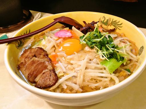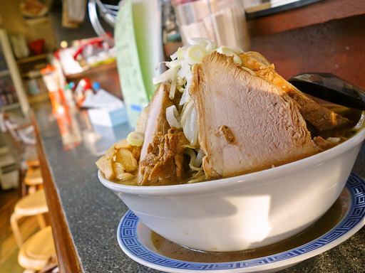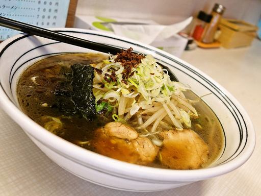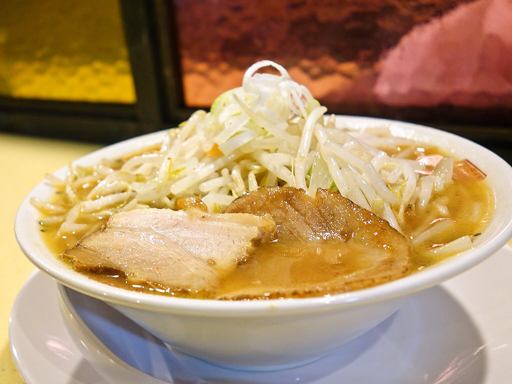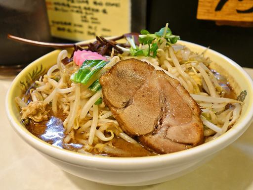 豚骨メインのスープに、塩分強めの甘辛ジャンクな醤油味!有料ですが野菜増しも可!