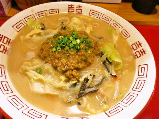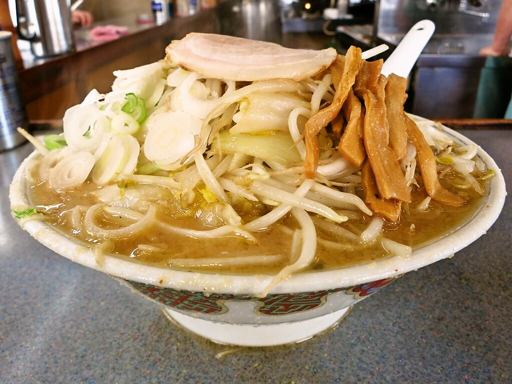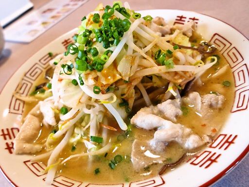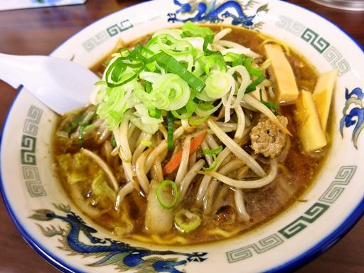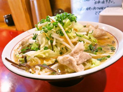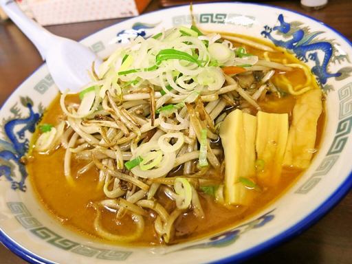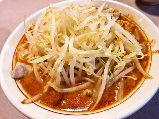 モヤシの山に、マイルド甘口な味噌味、唐辛子がピリリと締めるスープ!旭川の味噌ラー店。