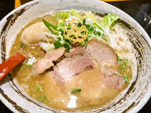 生のマグロ出汁の旨味に浸る!豚骨ベースの塩ラーメン。