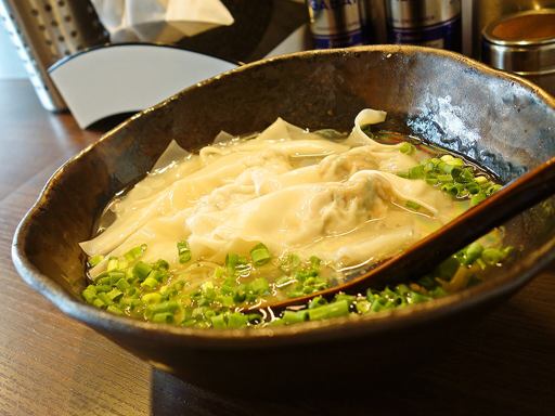 角無く円みある味わいが優しい!油無くあっさり澄んだスープに、100円でたっぷりのワンタンIN!