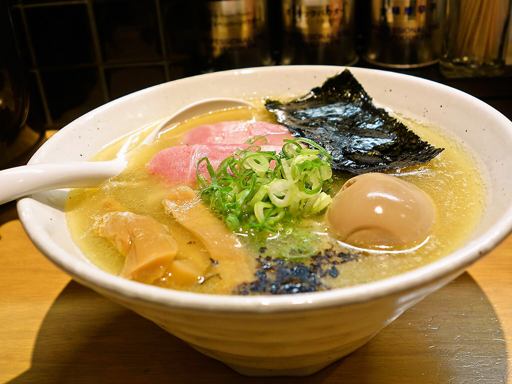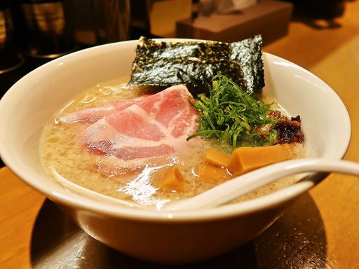 以前よりあっさりで万人向けかつ、呑み〆にも耐えうる強度ある豚骨和風白醤油に、シャープな辛味プラス!