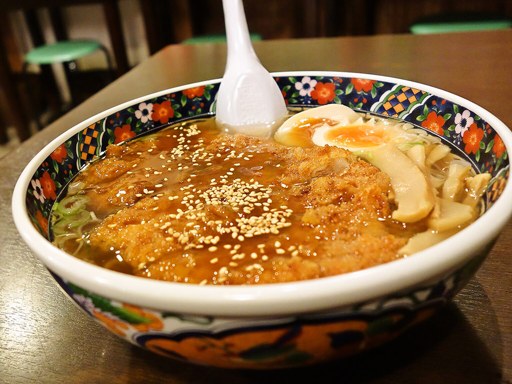 定番函館塩ラーメンに、甘ダレのロースカツがドドンと!スープにも甘ダレ混じって変わる味わい。