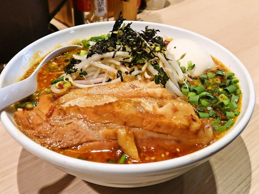 野菜や動物系の深い旨みある濃厚スープが辛さ包み込む、絶品激辛ラーメン!肉増しもスゲェ!